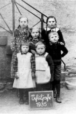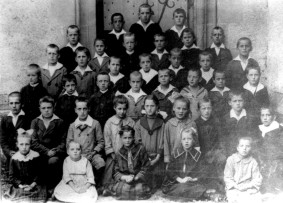 Bild 1: Schulklasse um 1897 vor der 1888 erbauten Schule; Bild 2: Ockfener Schüler 1927 vor der Kirche; Bild 3 Schüler im Oktober 1935 vor der 1888 erbauten Schule; Bild 4 Schuljahr 1935 |